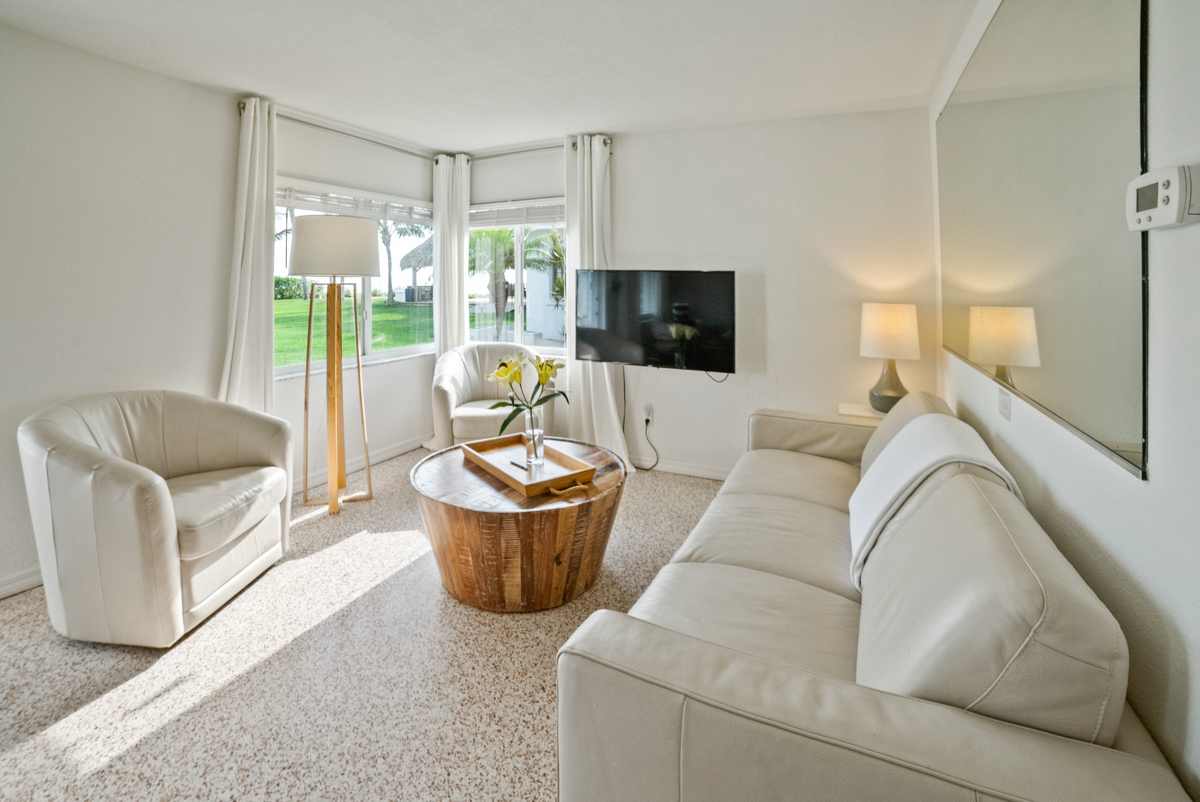 Experience coastal elegance in the Beachside One Bedroom Bungalow at Casey Key Resort. With a private terrace overlooking the canal, a plush Tempurpedic queen-size bed, and modern amenities like a full kitchenette and marble flooring, this retreat offers the perfect blend of relaxation and adventure along the Sarasota Intracoastal Waterway.